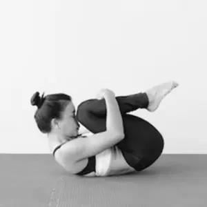 - Beugen Sie die Knie langsam und bringen Sie sie beim Ausatmen zur Brust. Umarmen Sie die Knie mit Ihren Armen, Knie und Zehen zusammenhalten.